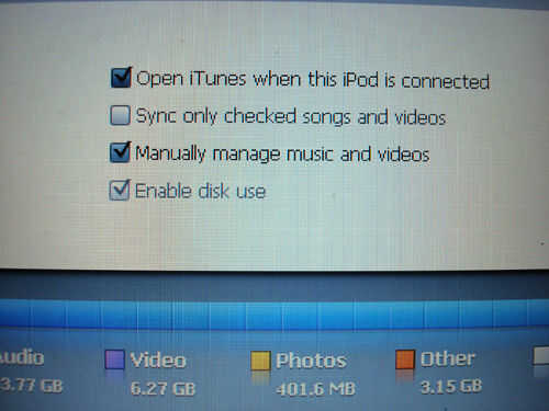 Primero necesita habilitar uso de disco en el iPod. Esto puede hacerse: