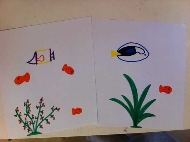 La táctica general debería ser dibujar el contorno primero, luego los detalles y luego rellenarlo. No desea dibujar los detalles overtop de un pez ya lleno en, que los marcadores contaminados. A nadie le gusta su marcador naranja dejando manchas negras.