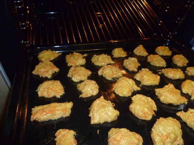 Gota por cucharada preparadas hojas para hornear o mantequilla la placa. Poner las galletas en el horno durante 10-15 minutos.