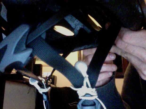 Nada muito avançado: matricular o elástico na fita do capacete, logo na junção, e passe o fone por dentro! E pronto! Não é um diseño feito pra colocar o fone na orelha, só pra sacar perto e ainda conseguir CuandoEscucha o trânsito.