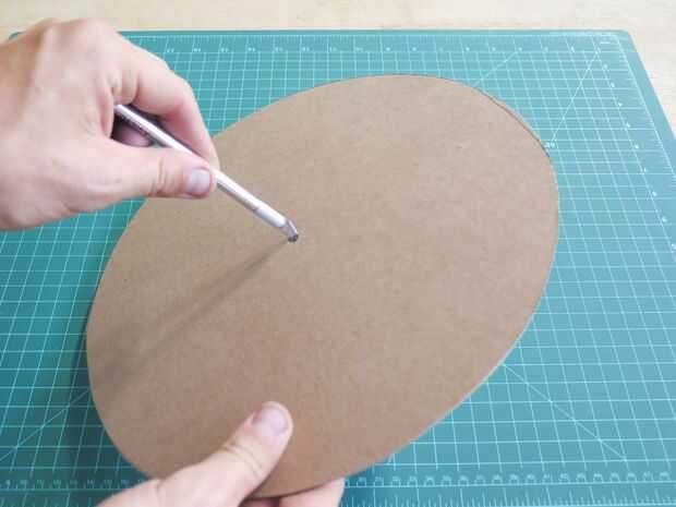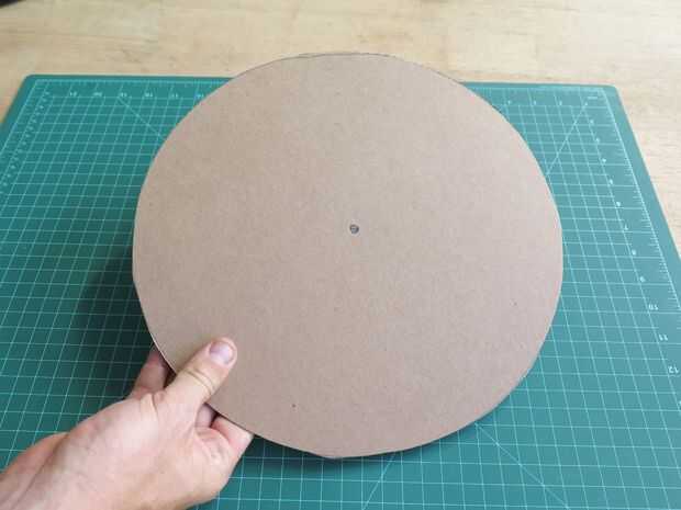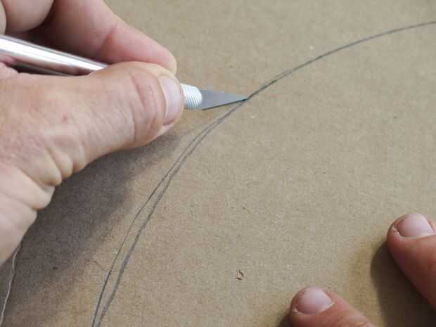 Rastro en sus registros incluyendo el agujero central de una pieza de cartón. Utilice una cuchilla x-acto para cortar el perímetro y corta una "X" Dónde está el agujero central.