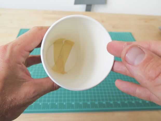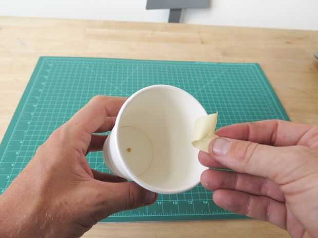 - Además, cinta de una aguja a una taza para conseguir la música para jugar en voz alta