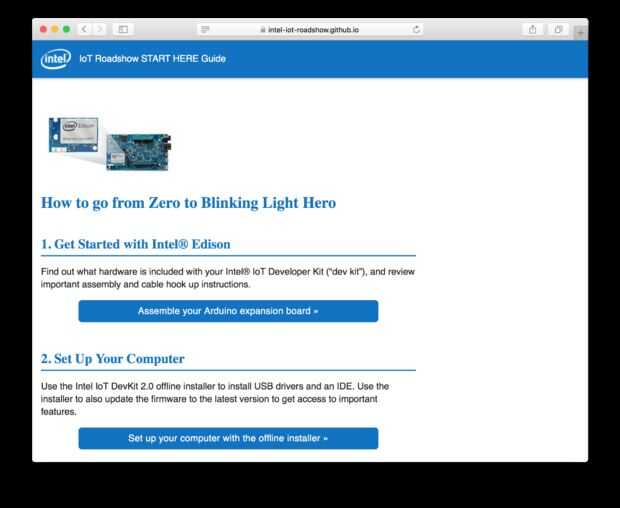 Uso la siguiente guías para configurar su Edison Intel con placa Breakout de Arduino y su entorno de dev