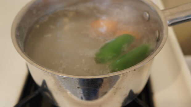Originalmente había planeado en la infusión de huevos en la cáscara con jalapeños y colorante. Para lograr esto perforar agujeros en huevos duros y los cocidos en agua con sabor a color durante 15 minutos. Este método no pudo así que intenté hervir huevos pelados en la misma agua por 15 minutos sin resultados. Intenté el empapar los huevos en la misma agua en el refrigerador por un par de horas y notó un leve toque de sabor jalapeño. Supongo que si les había empapado durante la noche podría haber tenido algunos huevos picantes pero descubrí los huevos florete bonito y sintió que acercaba a la consecución de lo estaba buscando, por lo que no hice ninguna más pruebas sobre los huevos de jalapeño.