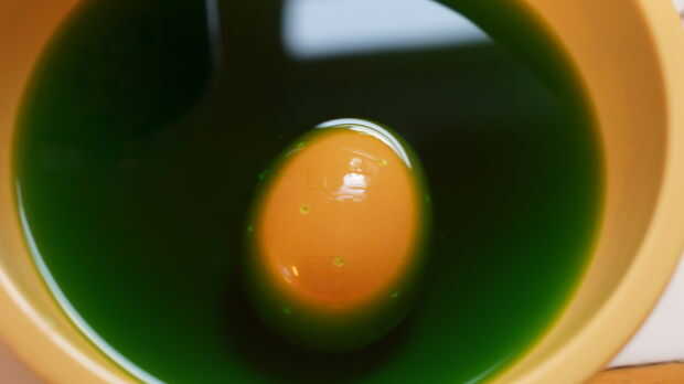 Poner huevos en el agua coloreada hasta su feliz con el color