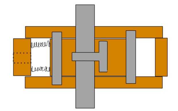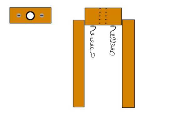 - Resortes y separación de prueba. Un tornillo de madera a ambos lados del agujero en el agujero del bloque de perforación, deja la cabeza cónica expuesta y lazo el extremo de un resorte en el tornillo. Usted puede apretar el tornillo para asegurarse de que el resorte se mantiene en él, utilice una arandela si tus resortes y tornillos son terriblemente mal. Taladro tornillos de madera en su bloque de canales a distancia igual a su bloque de madera con la bodega. Pase el otro extremo de los resortes de estos tornillos y apriete si es necesario. Ahora utilice la varilla de pasador para empujar el bloque en el canal.