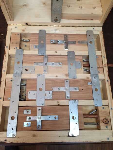 - Crear las paredes de la caja inferior. Estos deben ser la misma altura que las paredes del canal. Otra vez hemos utilizado madera de pino y recomendamos MDF.