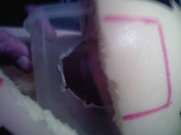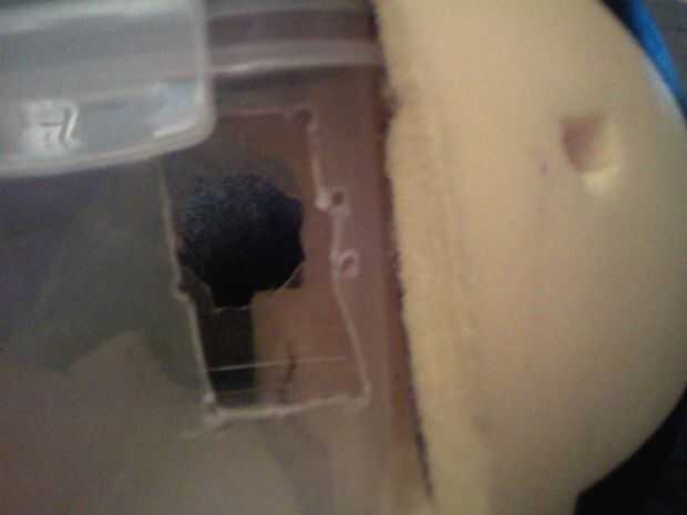 En la parte trasera hice un hoyo sólo lo suficientemente grande como para poner mi pinky a través de los botones no empujados por accidente o dañados.