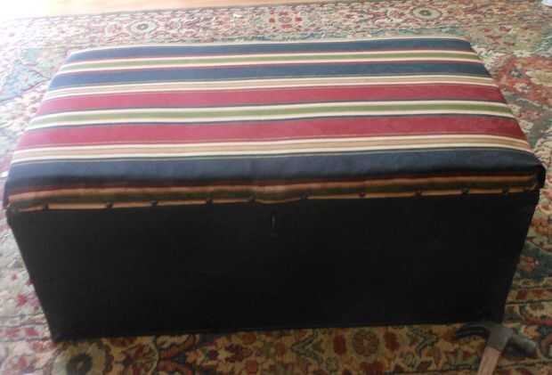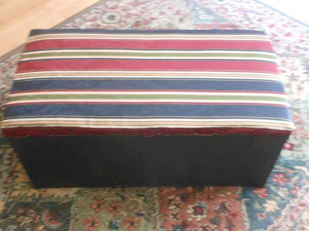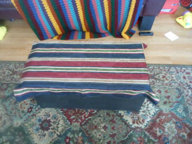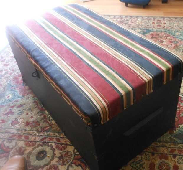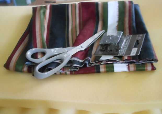 Un día para dos luego, fueron a una tienda de artículos de arte y compró un patio de material de tapicería en colores buenos para nuestra sala de estar y los clavos decorativos. Llegué casa y fue en la planta baja y ven hacia arriba otra vez con la espuma de chatarra, un martillo y un par de tijeras.
