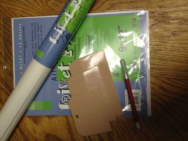 Mi método que lo hice el método trace la mujer usa en el primer video y quitado la parte de atrás pegado a la caja y alisa mi aire burbujas con una espátula suave como en el segundo video. Luego cortar mi diseño de mi cuchillo X - Acto. Ahora donde comprar frisket película que se puede comprar en tiendas de manualidades que venden aerógrafos 9 x 12 es fácil de venir por pero tuve que pedir un rollo de más cosas aquí http://www.dickblick.com/products/grafix-all-purpo... . Necesitaba una pieza más grande para el niño de la bóveda porque su boceto fue masiva y quería retomar la tapa entera de la caja.