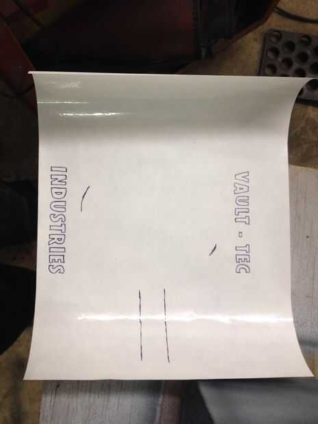 3) si vas a utilizar cualquier escritura o letras que vas a usar Futura BQ condensada negrita es lo que se utiliza en todas las ilustraciones de fallout. Abrí illustrator (Microsoft word o páginas funcionaría como bien futuro es una fuente preinstalada en la mayoría del software procesador de textos) y escribir a la redacción quería e imprimió por el regular 8 1/2 x 11 para mi bruto antes de lo hizo en una galería de símbolos. Sólo tienes que obtener el tamaño de fuente correcto dependiendo de qué tan grande quieres tu escritura a cada lado de la caja. Mina varía de un lado a otro.