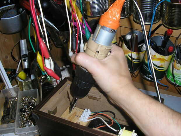 He convertido un taladro inalámbrico y un antiguo pedal de una máquina de coser para trabajar con mi powertools inalámbrico para tener un mejor taladro/destornillador/pulidora/etc y mi banco de trabajo.