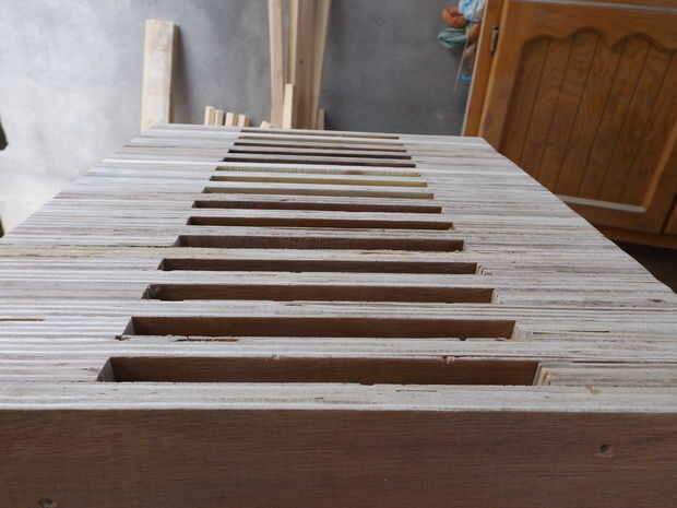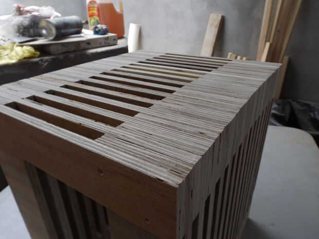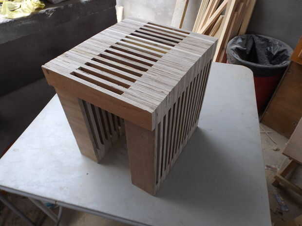 esta es la primera de cuatro taburetes que hice hace más de 2 meses. Son de uso diario como comedor sillas y sillas general, en lugar de reposapiés, como no tenemos un sofá en el que se siente en que podemos usar como reposapiés - no importa! Realm