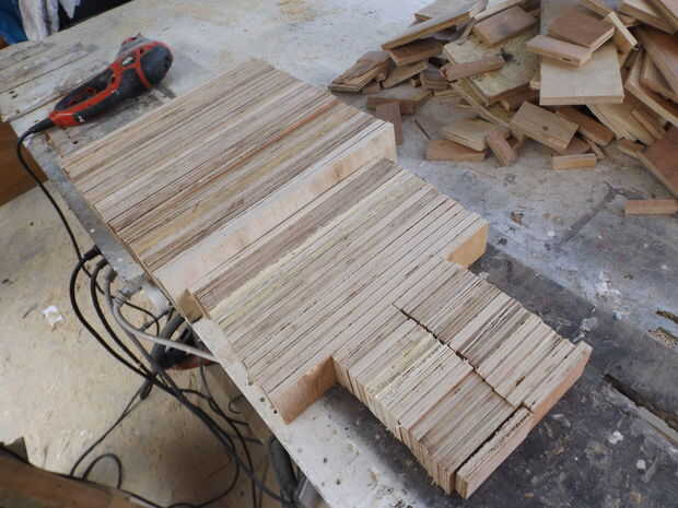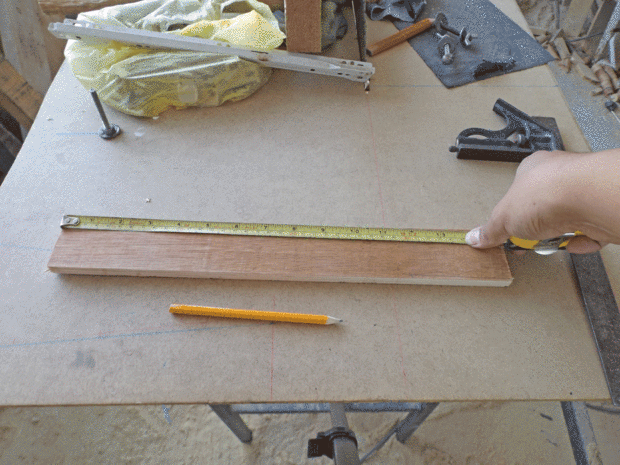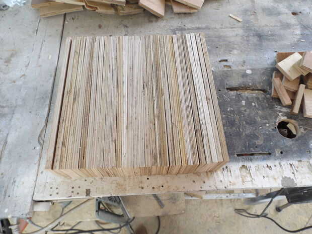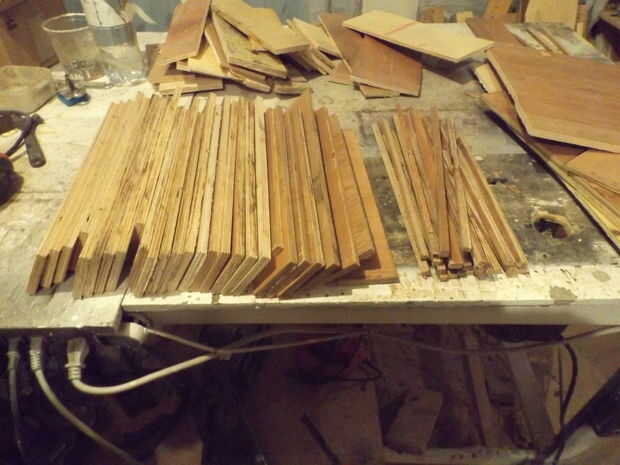 Primero corté las piezas a la anchura deseada para hacer esto utilicé una sierra de calar de mesa después, corté las piezas al largo deseado con una sierra para cortar ingletes, al final descubrí algunas piezas en el tamaño exacto de los espaciadores