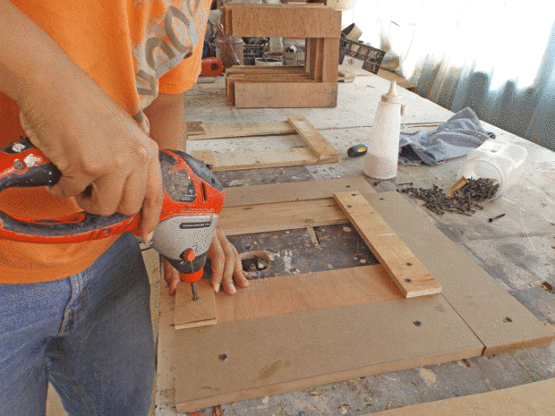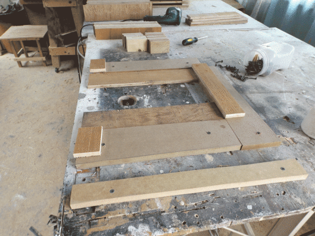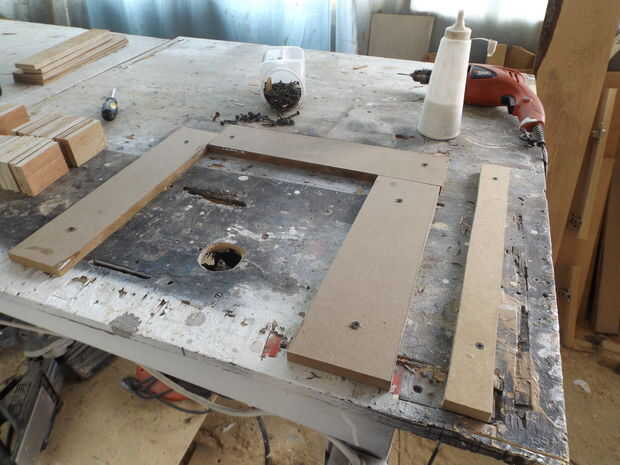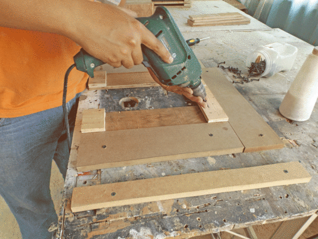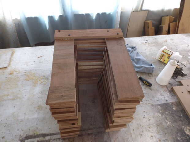 En esta parte, pegué un subconjunto de los reposapiés, para ello he construido un marco para hacer el trabajo más fácil. He utilizado tornillos para mantener juntos el conjunto hasta que el pegamento secó después de 60 min desenroscar todos los tornillos