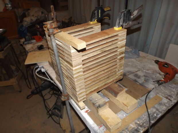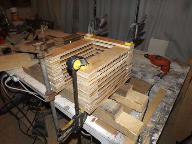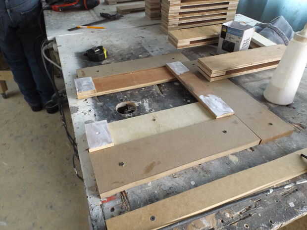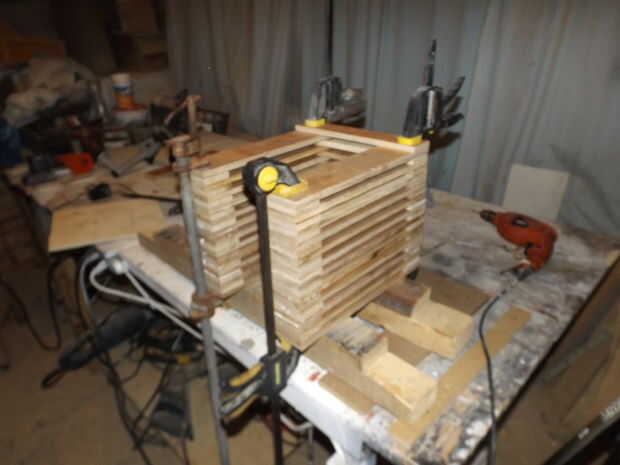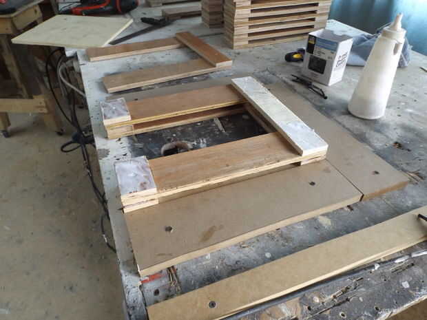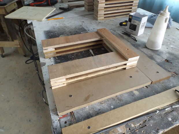 Pegué tres subconjuntos cada vez para asegurar la alineación, la dejé seca durante 60 minutos entre los pasos una vez dejé secar toda la noche.