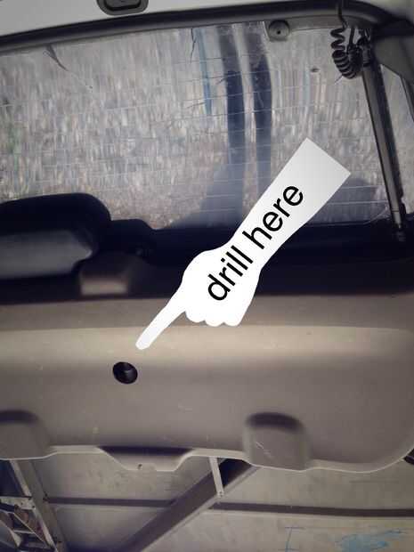 En el interior de la puerta trasera con cuidado utilice una sierra de agujero de 2" y perforar el marco plástico del panel sobre en el centro. Taladro lo suficiente como para pasar por el plástico. Hecho! Ahora se agitan el eje mecánico hasta desbloquear y hacia abajo para bloquear.