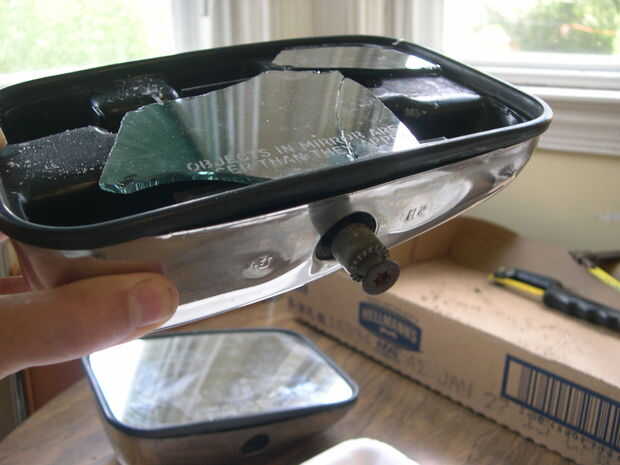 Los espejos se pegan con silicona en el interior marco de plástico negro. Truco es bajar el espejo buena sin crackearlo.