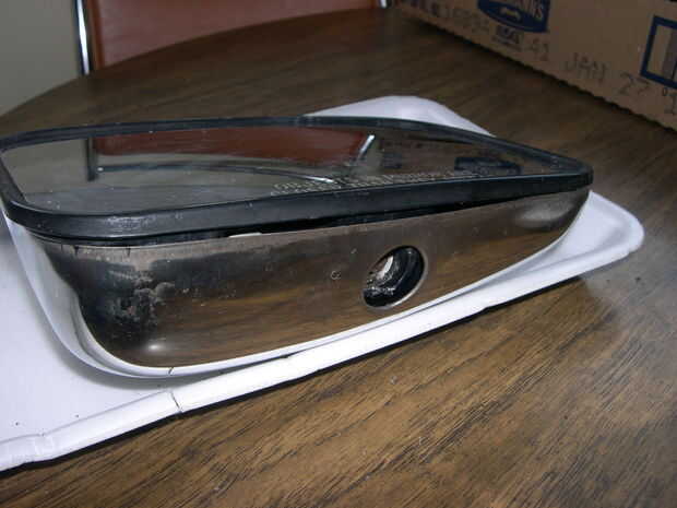 Con destornilladores, cuidadosamente levante el cromo detrás de la estructura de plástico. He doblado el cromo nuevo y rompió el borde de la estructura de plástico, pero a quién le importa - que sólo necesitaba el espejo en este caso. El cromo nuevo vivienda es pegar dentro de cuatro esquinas a la estructura de plástico negro con silicona. También puede haber doble echó a un lado la cinta espuma en el medio. Terminé estirar el metal, por lo que no es reutilizar esta parte.