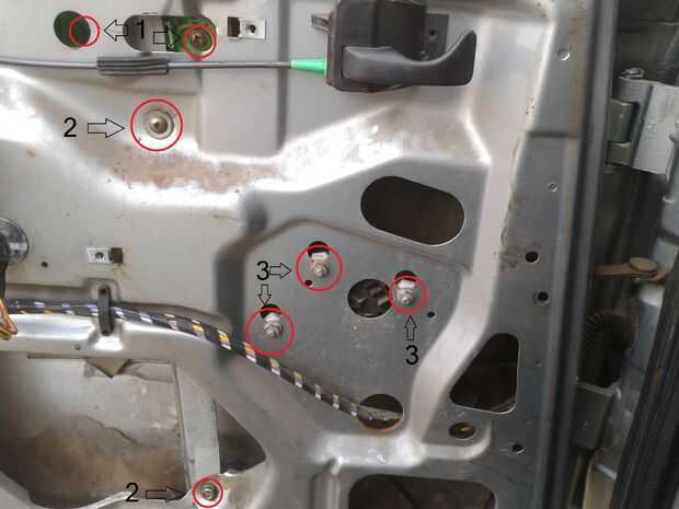Los dos primeros separan el regulador de la Copa. Los dos segundos separan el regulador del marco de la puerta. Los tres últimos se separan el motor y que pueda quitar el regulador.
