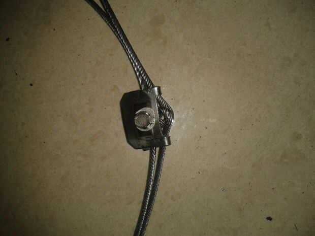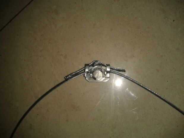 Doble los cables y utilice el clip. Luego del martillo en el remache y recorte el exceso. El clip debe encajar en el corredor.