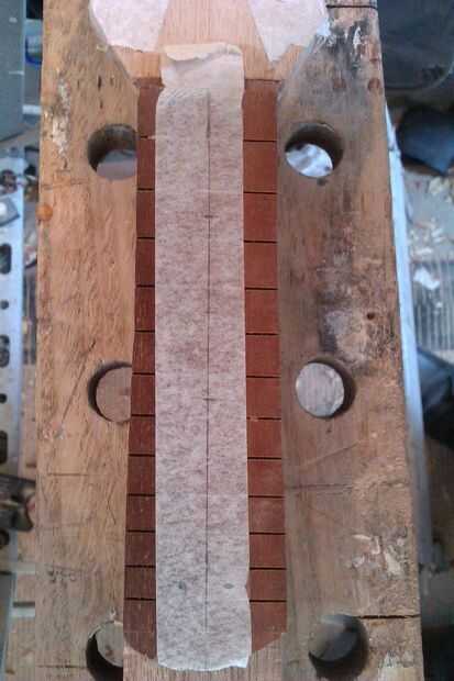 Ahora utilizar un lija fina pegada a un tablero de muerta plano aplanar y alisar ese diapasón porque una vez que los trastes el juego de acoplamiento es sobre.