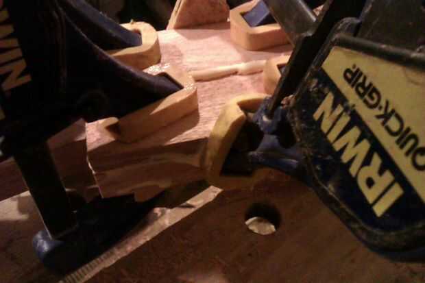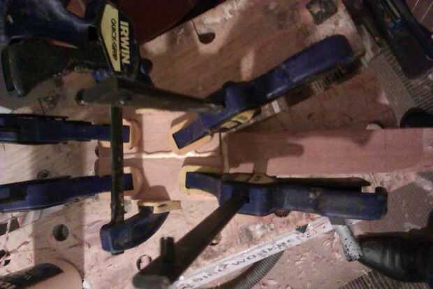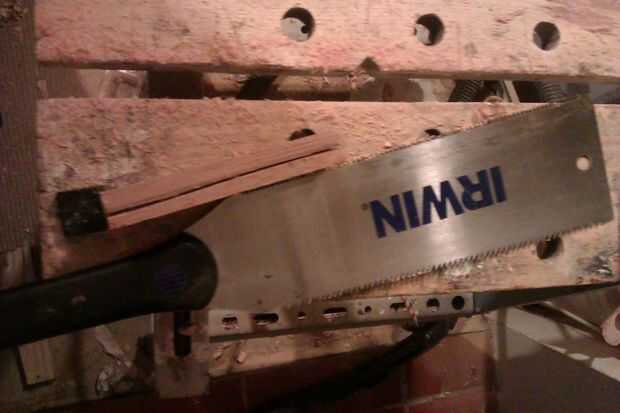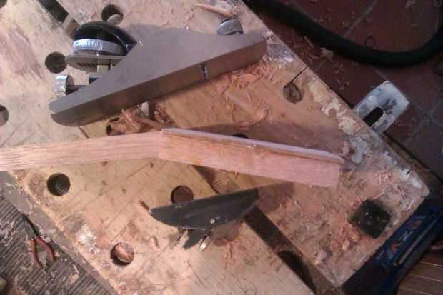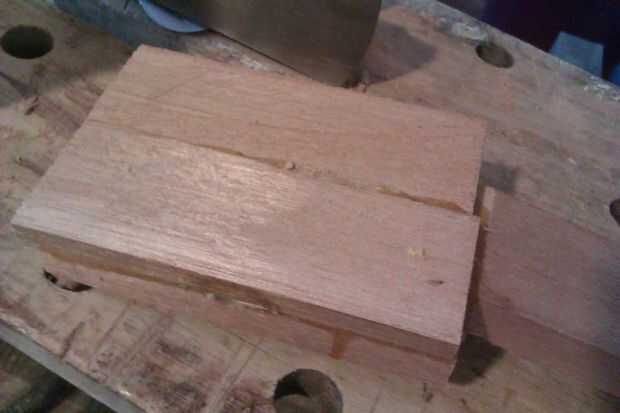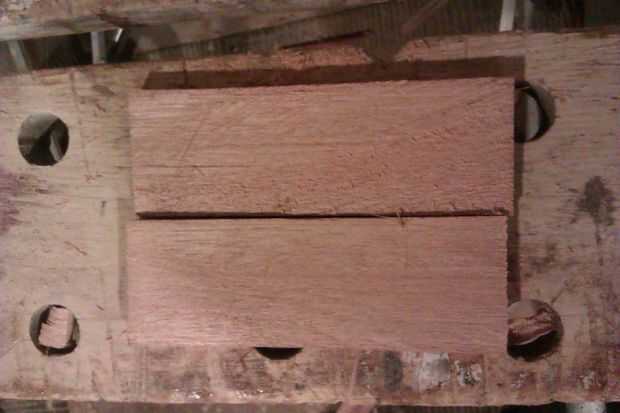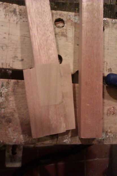 Mientras que no es 100% necesario me gustaría añadir una placa de cara. A veces es difícil conseguir madera fina y madera fina y con frecuencia costosos así que aquí sólo tomé otro poco de que 2 por uno Vestido de meranti y cortar por la mitad por la mitad con mi fiel Irwin Japonés estilo Sierra, había pegado a la parte superior de la cabeza y lo afeitó delgada con mi fieles planos.