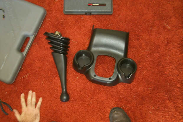 Se trata de una modificación destructiva, así que paro aquí si tiene miedo. El fuelle del cambio de goma se une a la consola con botones de plástico que se rompen al intentar quitarla. Usted puede ser capaz de salvar a algunos de ellos, pero yo los romperé. Deben eliminarse de todas formas, por lo que no estaba preocupado por romperlos.