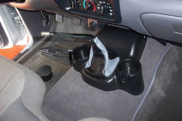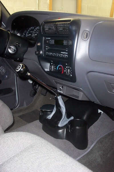 La consola se deslice hacia abajo sobre el brazo del cambio. Puede que desee ampliar el agujero de la bota de cambio para que el brazo de palanca de cambios se deslizará fácilmente en. No quiero sacar los clips de la carpeta.