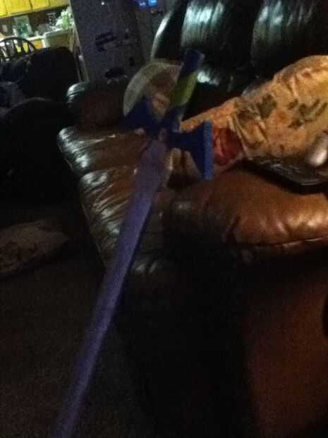 a continuación sólo pegado algunas falsas joyas amarillo y envuelto de la manija con cinta de enmascarar de verde un poco, entonces listo! Divertirse, esa espada del oscilación, pero suavemente, no puedo predecir si se romperá o no. Disfrutar.