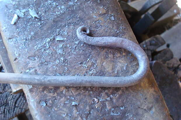 decidir cuánto de un J que desea, que la longitud derecha más allá de la curlique de calor, luego dobla sobre el cuerno del yunque. Asegúrese de que a la curva con el curlique hacia fuera, no desea en el interior.