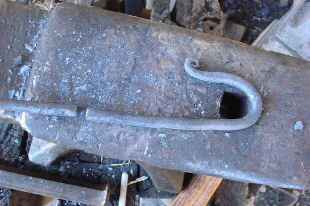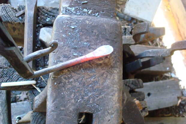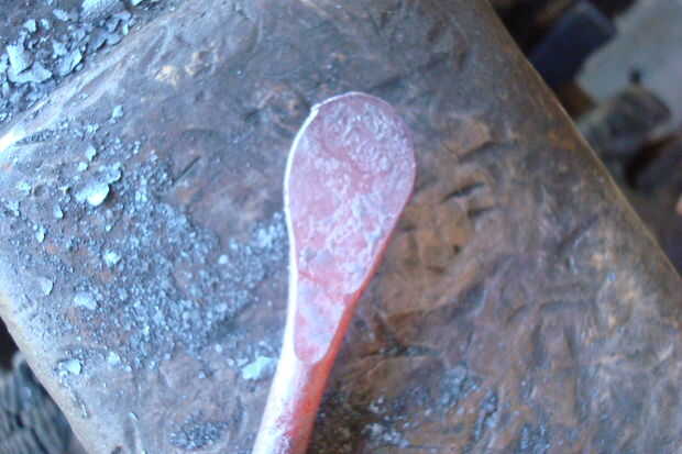 Debe asegurarse un lugar en la parte superior donde puede poner un agujero para clavar el anzuelo. Calentar la parte superior y aplanar con 3-4 golpes bien, puedes intentar hacer la parte aplanada mirada agradable y symettrical, pero me gusta la forma aleatoria que se aplana.  Ahora sólo pasar por el gancho y todo lo que necesita para enderezar.