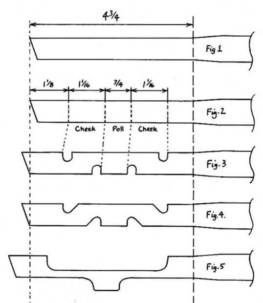 El diagrama de arriba será útil en la asignación de los pasos que nos esperan en la formación del ojo del hacha. Los diagramas muestran vistas al borde del hacha como se fullered para formar las características del ojo. Pasos más adelante en este Instructable hará referencia a las figuras 1-5.