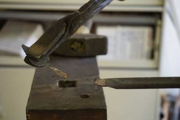 Usando un caliente corte, la mayoría de la manera a través de ambos lados del martillo y romper entonces con un par de pinzas. Esto le ahorra de golpear el martillo en el corte caliente y también para tu pieza de volando y quemar tu tienda.
