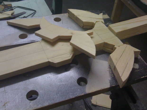 Una vez que sabía que tenía todas las piezas que necesitaba para llenar después cortar las piezas del ala en diferentes partes (izquierda y derecha las alas y el diamante medio) y se basó en el resto de los detalles.