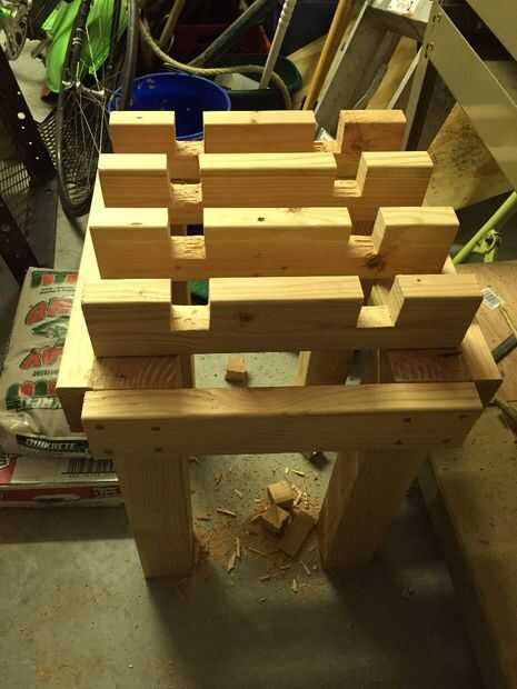 A continuación, corte muescas en cuatro de mis tableros más pequeños y clavó en su lugar. Estos tableros son portadores de peso realmente crucial y es mucho mejor para ellos caber firmemente que ser adelgazar.