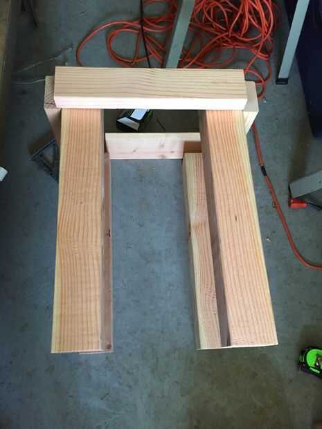 En primer lugar, clavado y pegado a un tablero más pequeño en el lado de dos pedazos de post, (tienes que haga tus piezas, pensé que sería divertido para a golpear un clavo y pagué por él) Repite esto y luego se unió a las dos mitades junto con tableros más pequeños en el lado.