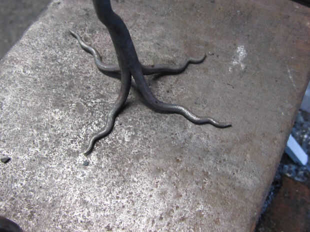 utilizo el martillo y el yunque para doblar el tallo y las pinzas para las raíces.