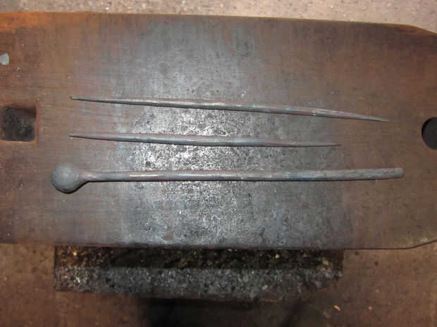 cortar las cabezas de los clavos y el sorteo una larga redonda cónica en ambos extremos.