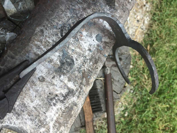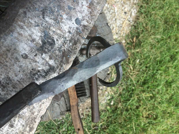 Para la manija que dibujó hacia fuera el acero hasta 8 pulgadas de largo, luego texturizado el mango para darle ese aspecto ondulado forjado a mano.