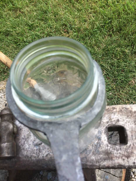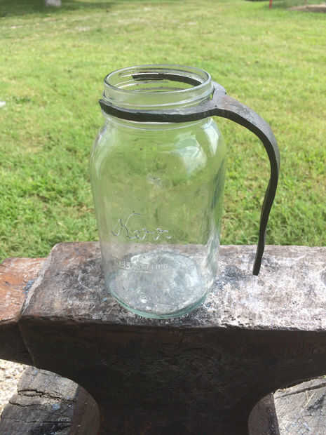 Para esta parte sería mejor si tuvieses un yunque con un cuerno si no tienes un yunque con un cuerno vas a encontrar algo para ayudar a moldear las curvas. Lo que hice aquí fue tomó los dos brazos y a partir de formar alrededor de la bocina para hacer un anillo. Hice mía por lo que enhebra dentro y fuera del tarro. Se debe mantener control de su tamaño y hacer un montón de ajustar para que quepa justo. Esto requiere mucha paciencia, permite decir unos frascos podrían haber sacrificado ellos mismos para este proyecto.