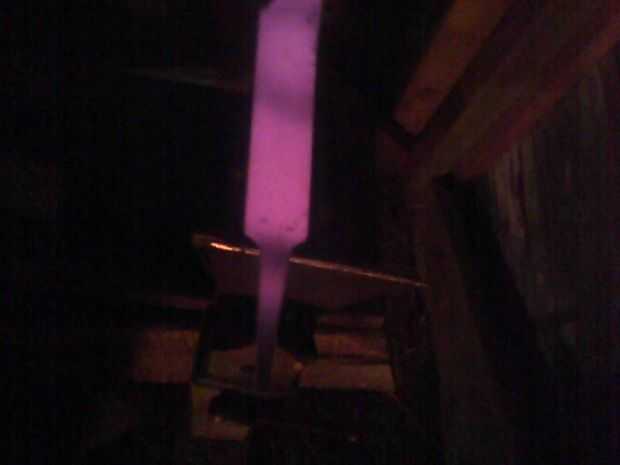 Paso dos-Utilice ya sea un cincel situado en un banco de vicio, una cabeza de hacha antigua, (véase el cuadro arriba) etc. (si tiene suerte de poseer un yunque profesional podría utilizar la broca de corte con su agujero de hardie) y libra el acero sobre él con un martillo grande (yo usé un four-pounder) o definir el acero en su yunque , sostener el cincel en la mano y golpear sobre él con el martillo.