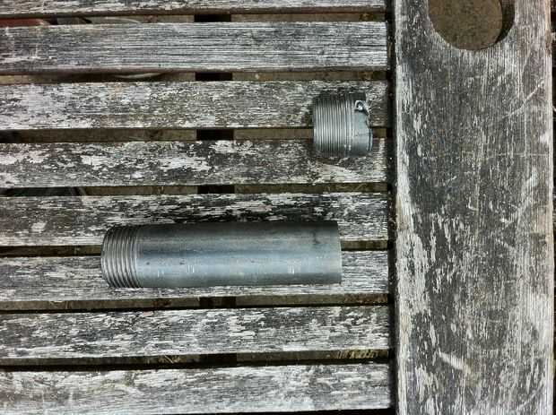 y corté un trozo del extremo de la tubería de 1 1/2", pero en este caso necesito la pieza corta, esto utilizo más adelante en el reductor para fijar el tubo de gas.