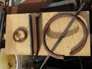 Si usted comienza con un 'nuevo' muelle en espiral desde un coche, tendrá que cortarse. Parece más fácil lanzar el muelle en espiral en una hoguera, deja que te calientes, luego enfríe (templar, suavizar o quitar el genio) luego la corte con una amoladora
