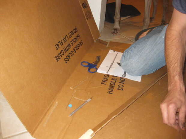 Dibujar un esquema completo de la hoja de la espada en una hoja grande de cartón. Utilice una cuchilla de corte de caja o algo similar para cortar cuidadosamente el contorno de la hoja. El protector de la Cruz se dibuja por separado y el mango es un trozo de tubo de PVC cortado a la longitud. Use un hack motosierra para cortar un bosque en el extremo del tubo y caliente pegar la "cuchilla" en la arboleda como se muestra en la imagen.