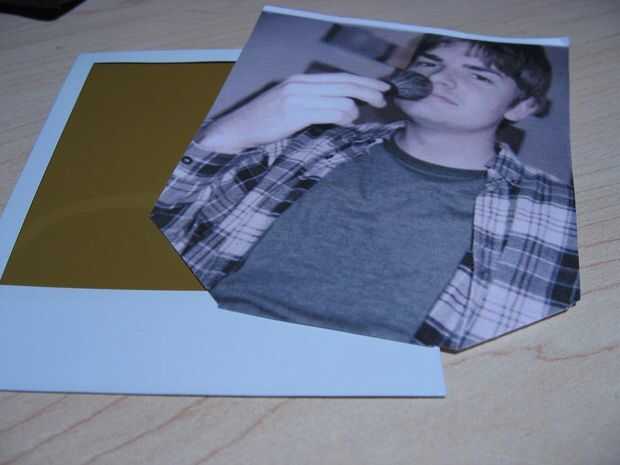 Voltee la Polaroid y garantizar las aletas hacia abajo usando pegamento o cinta. La cinta es mucho más fácil si nadie va a ver la parte posterior de la imagen.