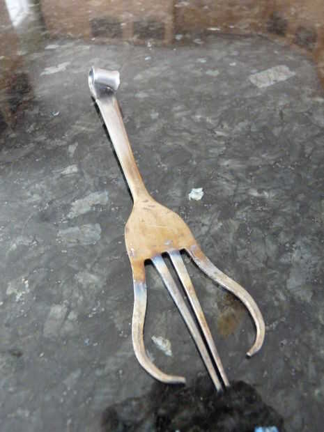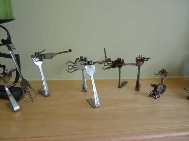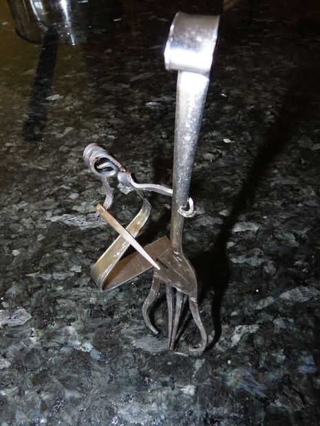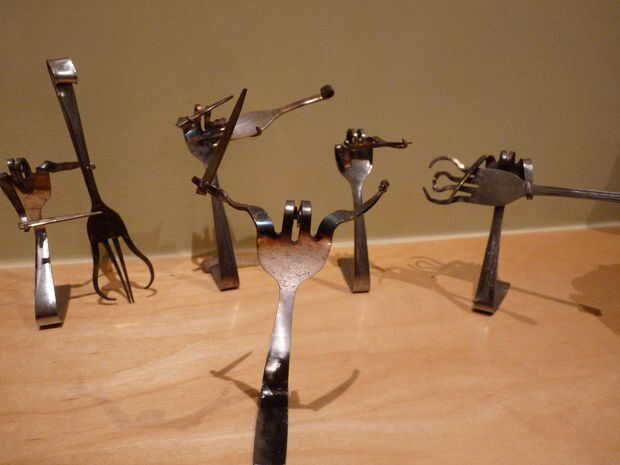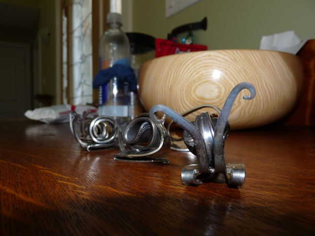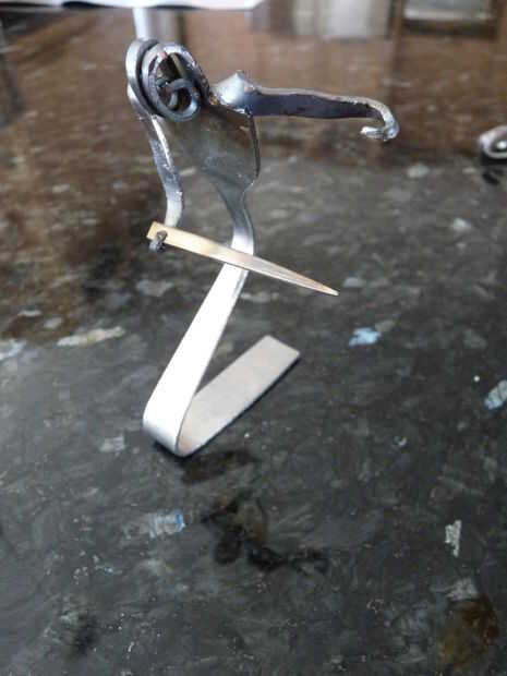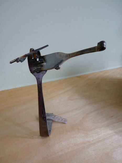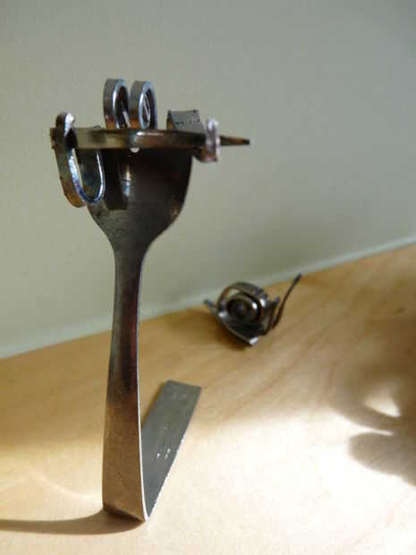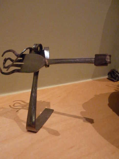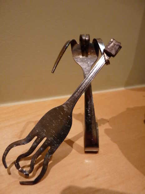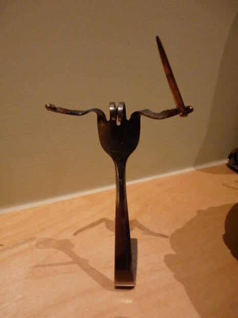 Hey Instructables! Estoy en marzo romper nada tienen que ver, así que ayer estaba buscando en el sitio una hora o así y he encontrado un interesante instructivo! El instructivo es "tenedor" por shauna. Muestra cómo hacer un caracol simple de un tenedor, con dos pares de alicates. Decidí que me gustaría probar esto, ya tenemos un montón de cubiertos extra de cuando nos soldada con autógena metal flores. Hice caracoles 10 o así, y luego decidió que era tiempo para algo un poco más difícil. Busqué imágenes del arte de la cuchillería en la web y había encontrado a un bajista. Así que decidí ver si podía hacer uno. A diferencia de los caracoles, cual llevará unos 10 minutos para hacer, el bajista tomó más de media hora! Pero al final, valió la pena. Creo que mantener en un estante en algún lugar, o la dan a mi abuela a vender a uno de sus ventas de arte. Si te ha gustado este instructable, por favor vota por mí en el hecho, concurso de fotografía y la tasa de! ¡ Gracias! :D