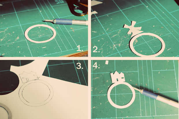 2. diseñar la forma que quieras en la parte superior su anillo y corte de cartón.