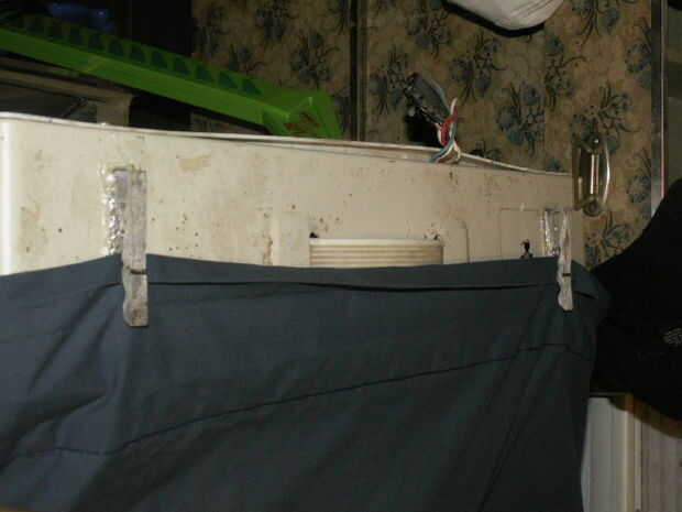 En primer lugar sus dos paños pegar pasadores en la parte superior de la caja del ventilador que he utilizado pegamento caliente que funcionó muy bien.