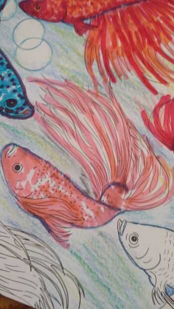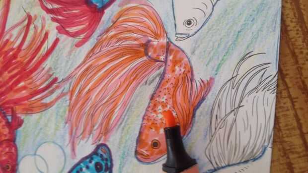 Forma creativa colorante peces usando marcadores de terapia de arte grande en un fondo de agua parte 2 (10 / 13 paso)